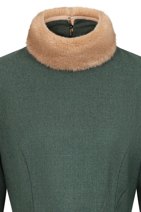 Step back in time with the Lorna 40s Swing Dress, a playful nod to classic vintage winter style. This elegant dress features a luxurious detachable faux fur collar that adds cozy charm and versatility. Its flowing full circle skirt moves beautifully with every step, while practical side pockets keep essentials close at hand. Perfect for vintage lovers who want to twirl in timeless fashion. Note: Color may vary between production lots, making each dress uniquely special.