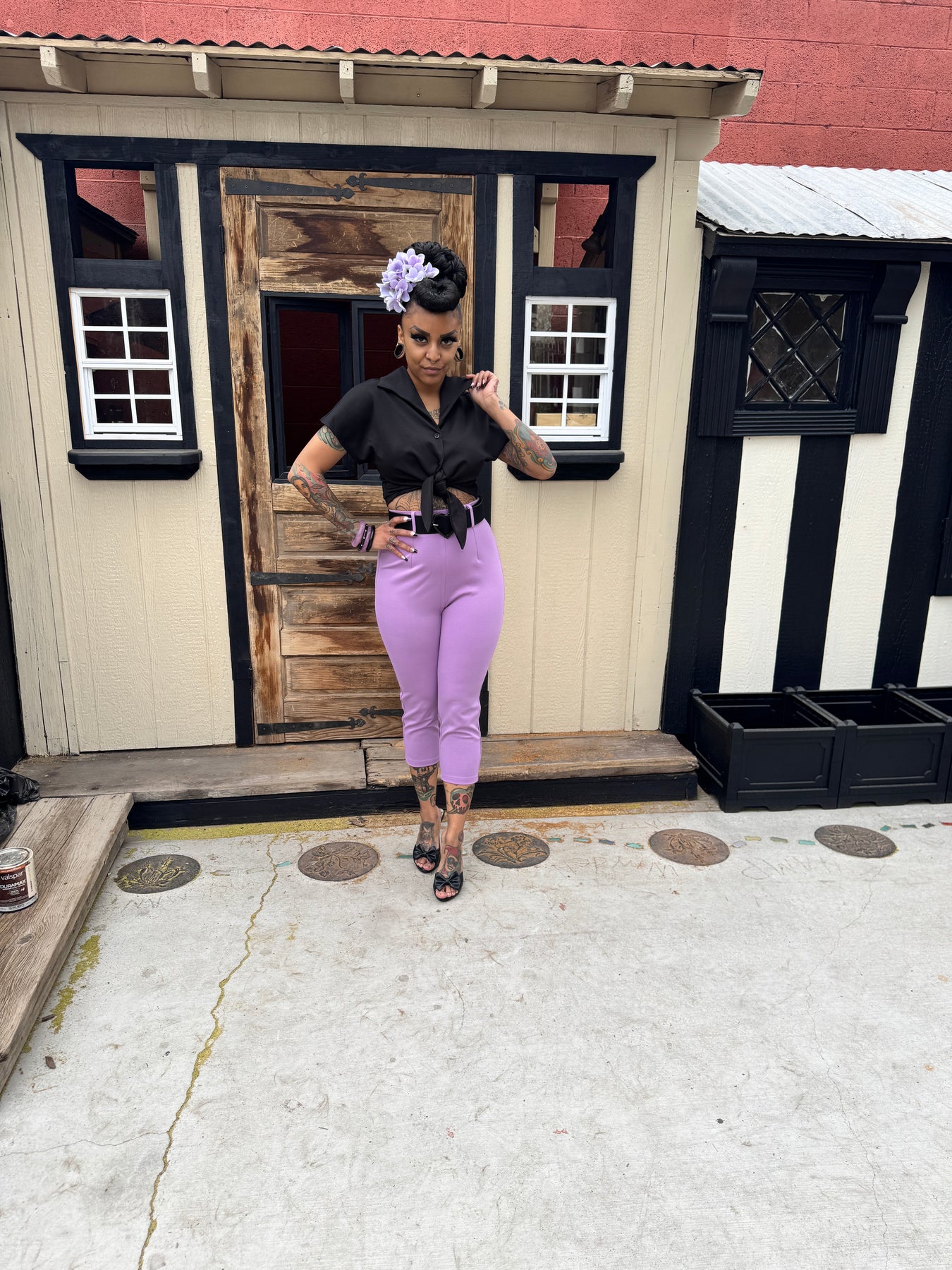 Celebrate your curves in our new fabric Love Your Curves Capri, crafted from luxurious stretch fabric that moves with you all day long. This summer-ready lilac color pair features a flattering fit designed to embrace your silhouette, complete with a matching heart-adorned belt for that extra touch of confidence. Pair it with our Black Tie Top for an effortlessly chic, head-turning look that's perfect for warm-weather adventures.