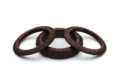 The Splendette Dark Woven Bangles come in a handy pre-made stack of three bangles. Perfect for stacking on their own or spacing out other fakelite bangle stacks to add a touch of the tropics!