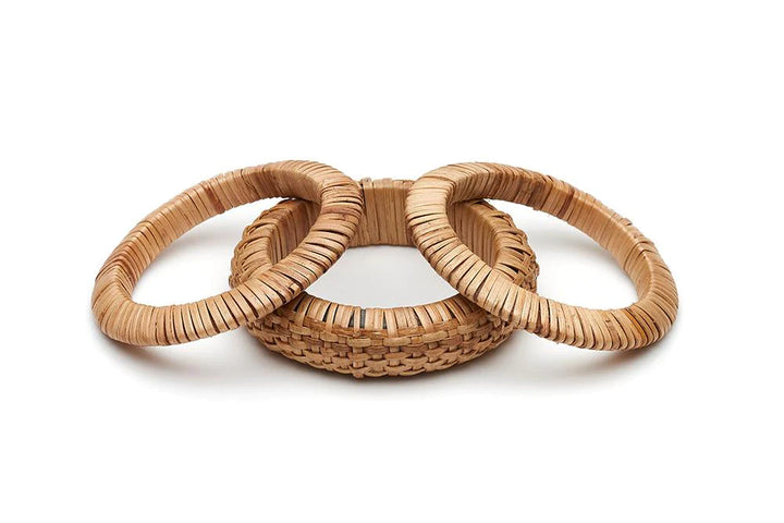 The Splendette Dark Woven Bangles come in a handy pre-made stack of three bangles. Perfect for stacking on their own or spacing out other fakelite bangle stacks to add a touch of the tropics!